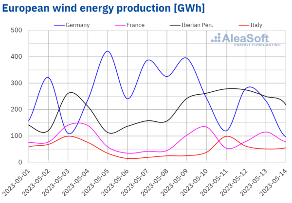 In the second week of May, an important increase was registered in wind energy production in Portugal, when it raised 89% compared to the production of the first week of the month. In the Spanish and French markets, the production with this technology also increased, 39% in Spain and 7.2% in France. However, wind energy production in Germany set 10% below that of the previous week, and 4.2% in Italy. For the third week of May, AleaSoft Energy Forecasting’s wind energy production forecasting indicates that wind energy production might decrease in most of the analysed markets except in Italy.