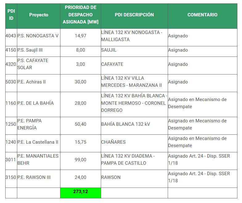 The Minister of Energy and Mines of Argentina (MINEM) has published a list of the nine renewable energy projects, which have secured dispatch priority and have signed PPAs with a private company.