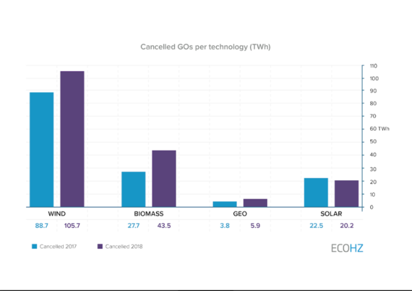 “For the first time, renewable energy demand in Europe surpasses 500 TWh – or half a billion Guarantees of Origin,” said Tom Lindberg, managing director of ECOHZ, commenting on the 2018 statistics issued by the Association of Issuing Bodies. “If the growth trend from the last five years continues, the GO-market will soon surpass €1 billion … customers are willing to pay a premium on certain origins of energy.”