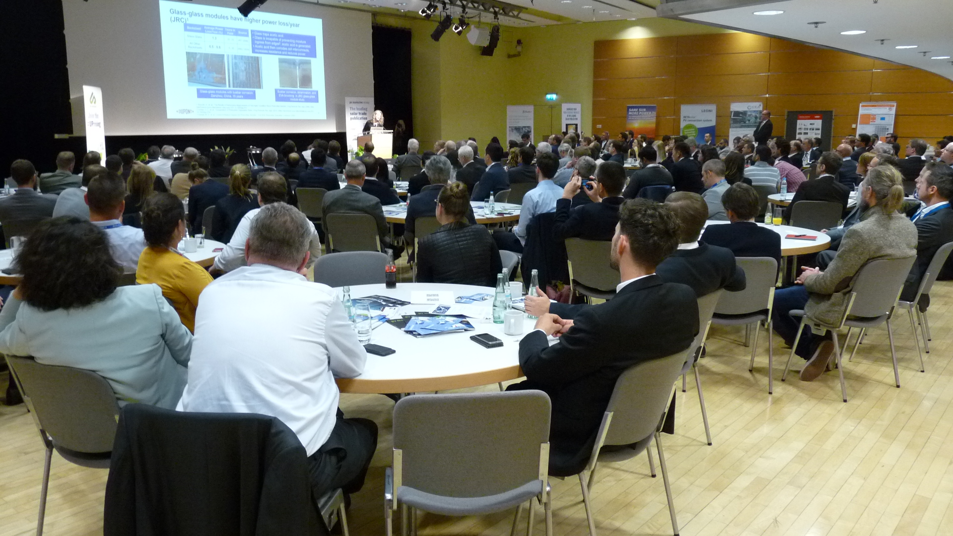 There was harmony among the panel on stage at that point but the same couldn’t be said of a discussion of the merits and demerits of testing modules to two or three times the rigors demanded by IEC standards. If I point out Paul Grunow, of testing company PI Berlin, and backsheet manufacturer DuPont’s Lucie Garreau-Iles were the panel members who indulged in an entertaining to and fro on that topic, you can probably guess who was arguing for what.