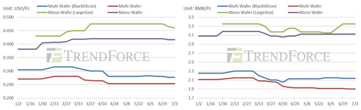 * This article was amended on 29 August, 2019, to update the graph on wafers. In the original graph provided by TrendForce, the unit of wafer was mistakenly labeled USD/W. It should be USD/Pc. We apologize for this mistake.