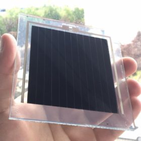 The solar cell was built on a fluorine-doped tin oxide substrate coated with titanium dioxide, an electron selective layer made of mesoporous titanium dioxide, a zirconium dioxide insulating spacer layer, and a graphite electrode. A mini-module fabricated with this cell passed, for the first time, a hotspot test.