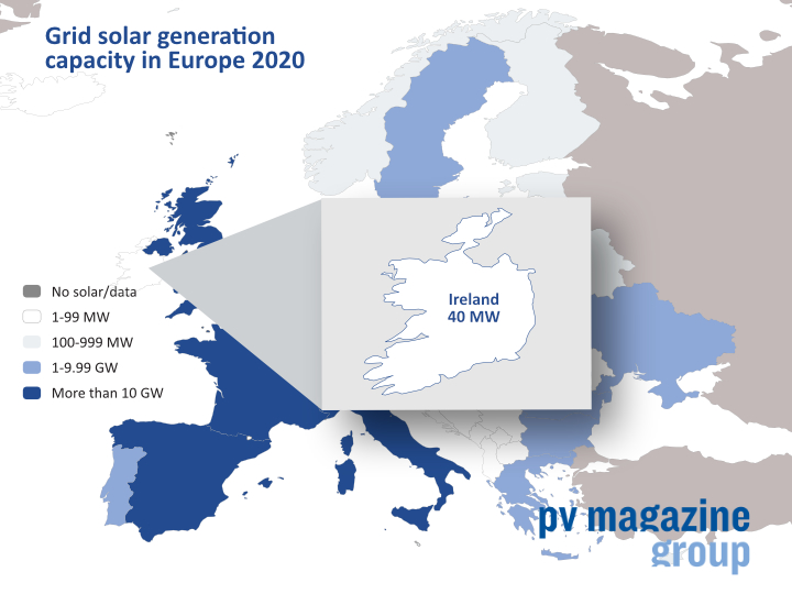 The Irish government has announced an ambition to have 70% of its power generation fleet based on renewables this decade. The International Renewable Energy Agency has estimated the EU member state had just 40 MW of grid-connected solar capacity at the end of 2020.