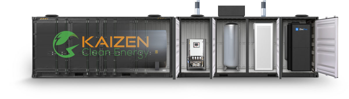 Kaizen Clean Energy (KCE) and ZincFive have come together to develop an integrated distributed energy solution for EV charging, hydrogen fueling and backup power. The new solution is said to provide the lowest delivered cost for hydrogen fueling, as well as up to 2,300 kg/day of hydrogen production, which is equivalent to 38 MWh of usable energy, in a 40-foot, movable containerized solution. It can be islanded or grid-connected, with no risk of battery thermal runaway and a small volume of hydrogen stored on site. The system integrates KCE’s hydrogen generator, ZincFive’s immediate power nickel-zinc batteries, and fuel cells from Power Cell to offer customers modular, scalable economic fueling as a service. Robert Meaney, co-founder of KCE, told pv magazine that the energy input comes from methanol. He said the system is essentially the clean version of a diesel generator. It uses the ZincFive battery for immediate demand response as the methanol-to-hydrogen system ramps up to full production over the first 15 minutes. After entering full production mode, the batteries shut off and the reformer takes over the full power demand. The system is charger agnostic and can support multiple DC fast chargers at once. KCE has started accepting pre-orders and plans to deploy a 20-foot, 150 kW solution with pilot customers in the fourth quarter of 2022.