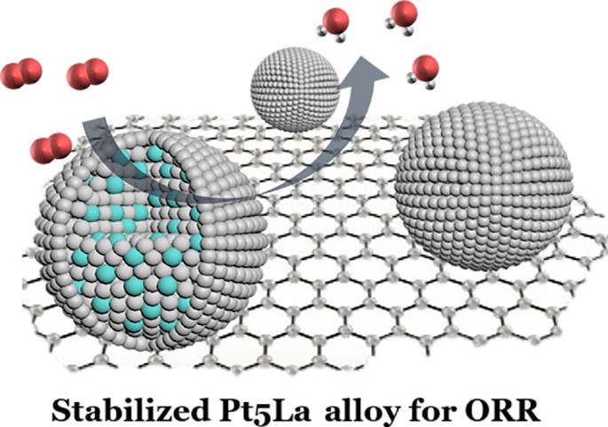 Tsinghua University researchers have devised a way to combine high-cost platinum and a low-cost rare earth element, lanthanum, as an alloy to serve as a catalyst in fuel cells. The team obtained readily available lanthanum salts and trimesic acid, and these two precursor materials then self-assembled themselves into nano-scale “rods.” These nanorods were then impregnated with platinum at 900 C. The resultant platinum-lanthanum nanoparticles were then stress-tested for their performance in a fuel cell. “The resultant Pt5La alloy catalyst exhibits enhanced activity with half wave of 0.92 V and mass activity of 0.49 A·mgPt−1, which strictly follows the 4e transfer pathway,” the researchers wrote in “Ultra-stable Pt5La intermetallic compound towards highly efficient oxygen reduction reaction,” which was recently published in Nano Research. They said that the catalyst exhibits superior stability after 30,000 cycles of the accelerated stressed test, with mass activity retention of 93.9%.