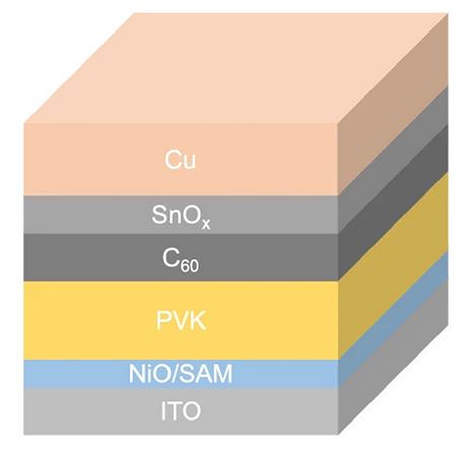 The researchers built the top cell with a glass-coated indium tin oxide (ITO) absorber, a nickel (II) oxide (NiO) layer, a hole transport layer (HTL) with a self-assembled monolayer (SAM), a perovskite absorber with an energy bandgap of 1.68 eV, an electron transport layer based on buckminsterfullerene (C60) and a tin oxide (SnOx) buffer layer, and a copper (Cu) electrode.