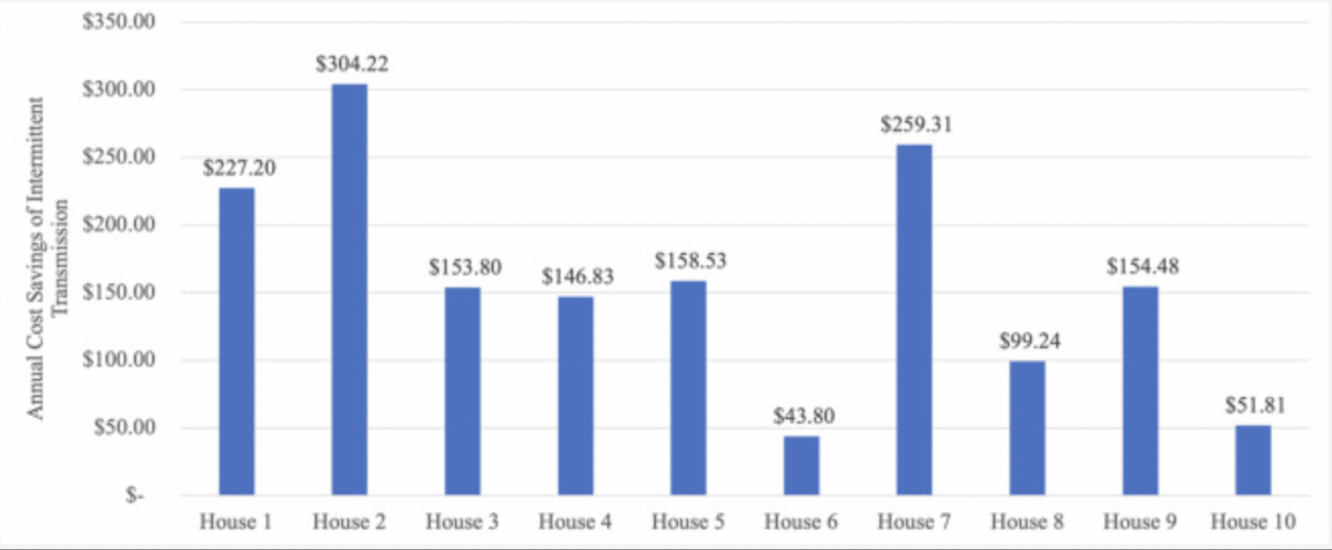 The True Peers case study led to 521 kWh of energy exchanges, yielding total annual cost savings of $70.78 under a time of use (ToU) rate structure. In contrast, the Intermittent Transition case study resulted in 11,478 kWh of exchanges, with total net savings of $1,599.24 under the same ToU rate structure.