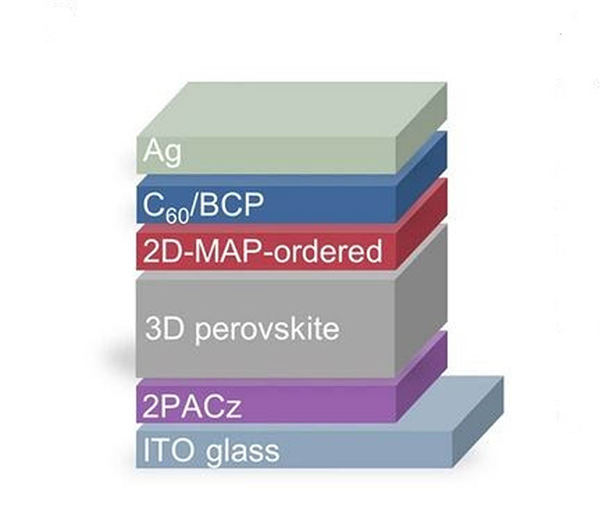 Tested under standard illumination conditions, the solar cell achieved a maximum power conversion efficiency of 26.05%, a certified efficiency of 25.44%, and a fill factor of 85.5%. For comparison, a benchmark solar cell without the 2D-MAP achieved an efficiency of 23.5 and a fill factor of 81.45%.