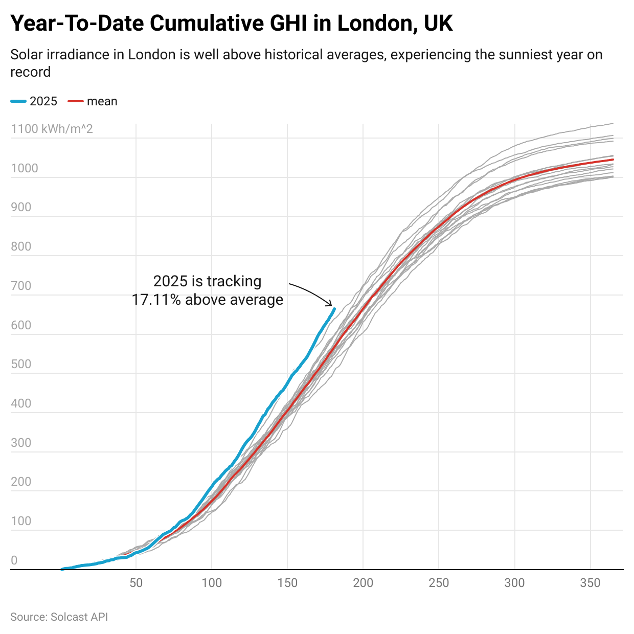 Year-to-date Cumulative GHI – London UK