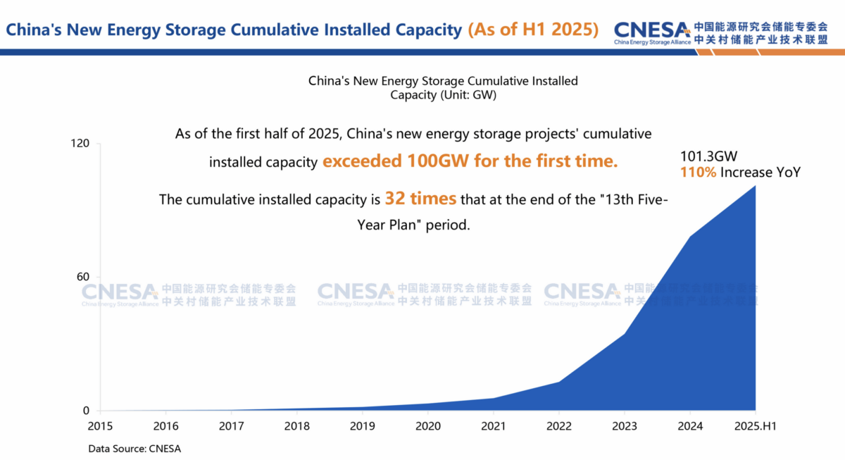 China’s new energy storage market reached a milestone in the first half of 2025, according to a report by CNESA at the Western Energy Storage Forum in Hohhot, Inner Mongolia, earlier this week.