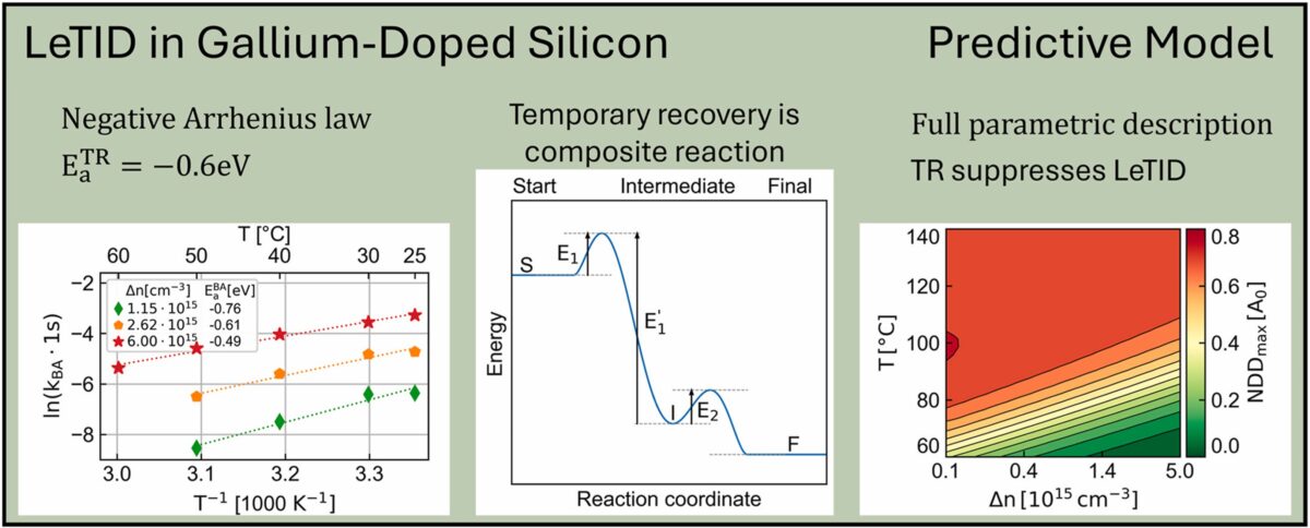 “We specifically investigated the kinetics of temporary recovery in gallium-doped silicon,” the research's corresponding author, Fabian T. Thome, told pv magazine, noting that the group had previously demonstrated and reported in Solar Energy Materials and Solar Cells that temporary recovery can suppress the extent of the LeTID degradation.