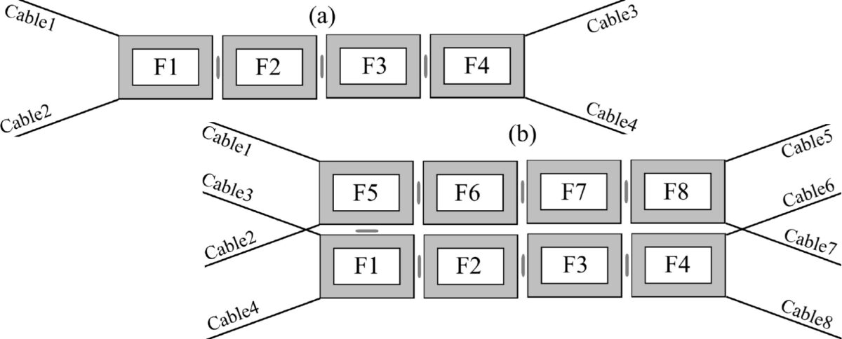 The simulation analyzed the arrangement of one to six FPV modules, either in a single-chain configuration or a parallel configuration, where two channels are placed side by side. For each configuration, the simulations were conducted across 12 regular wave frequencies. That was done to capture the hydrodynamic behavior under various conditions. According to the team’s findings, motion responses of articulated floats are essentially consistent across different configurations, with the most significant variations occurring near the natural frequencies of each degree of freedom.