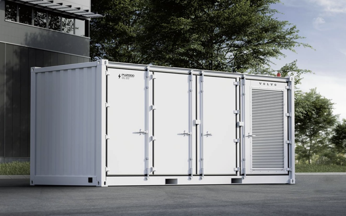 The PU2000 is an AC block design, integrating power conversion, site controller, metering, and switchgear in an all-in-one configuration. Volvo said the system was designed, developed, and manufactured in Sweden by Volvo Energy.