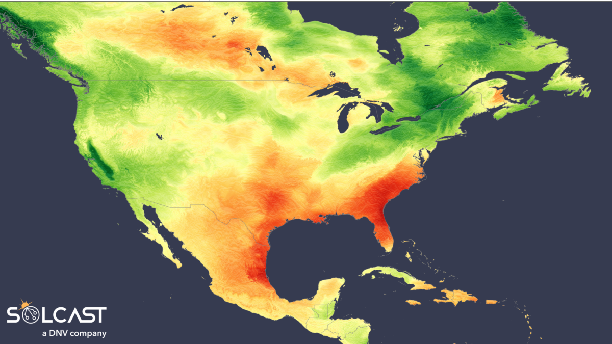 Irradiance patterns across North America in November showed a stark east-west divide, according to analysis using the Solcast API. The southeastern United States and Mexico recorded strong positive anomalies, while the western regions endured persistent cloud cover and heavy rainfall, driving irradiances well below average. Seasonal forecasts suggest this pattern will persist through December, with only minor shifts in the southwest.