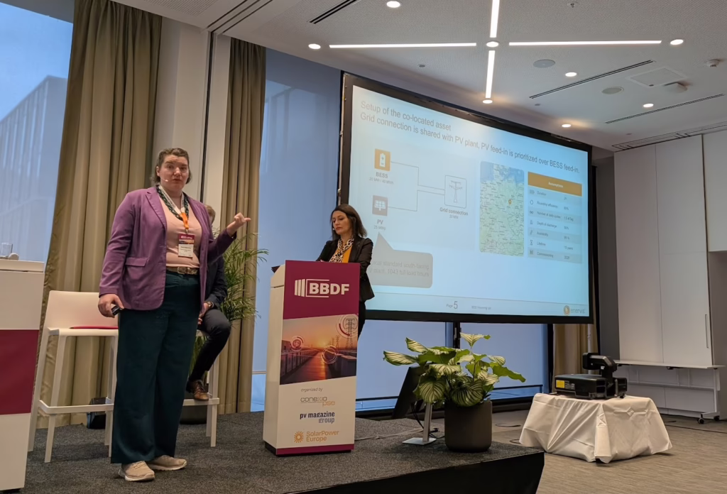 Marcel Marquart, country manager for Germany at Clean Horizon, presented a 50 MW/150 MWh standalone project, representing a pure merchant approach. Meanwhile Xenia Ritzkowsky, senior consultant at Enervis energy advisors, laid out a co-located model where a 20 MW battery is added to an existing 25 MWp solar farm with a 20 MW grid connection already in place.