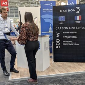 At the Intersolar trade show in Munich, the startup Carbon is showcasing its first PV modules, which will be available from mid-2026 in power ranges from 445 Wp to 505 Wp. A third module, with power outputs from 615 Wp to 625 Wp, will later complete the Carbon One series.