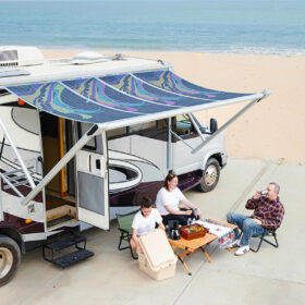 Eco-dynamic Tech’s 1,000 W solar awnings for recreational vehicles (RVs) feature flexible heterojunction solar cells and can be customized with a range of color patterns.