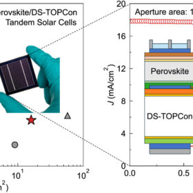SERIS researchers developed a 16-cm² perovskite-silicon tandem solar cell with a double-sided TOPCon bottom cell, enhancing passivation, reducing recombination, and increasing voltage and fill factor.