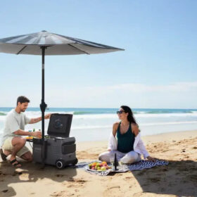 Anker has introduced an off-grid solar perovskite umbrella and a cooler with battery energy storage at CES 2025 in Las Vegas, Nevada.