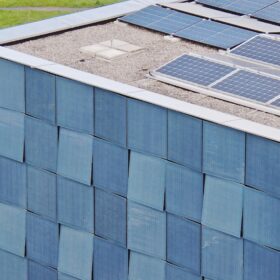 Swiss retailer Lehner Versand generates 24.5% of its building energy needs thanks to a renovation project that added 109 kW capacity of solar PV to its facade. The PV array has a sequins-like effect, enabled by screen-printed glass modules and a novel curtain wall sub-structure.