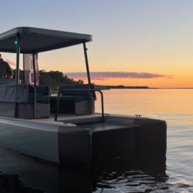 Swedish startup POL has unveiled POL Lux, a catamaran boat design with dual electric motors and a solar canopy that can covert into a private sleeping area.