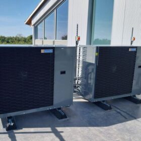 The Tyneham 290HT heat pump is intended for applications in commercial buildings. It uses propane (R290) as the refrigerant and has a coefficient of performance of up to 4.94.