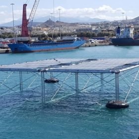 Developed by German company Sinn Power, the floating platform currently hosts solar modules totaling 80 kW and may also embed small wind turbines and wave energy converters.