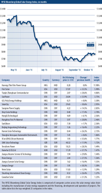 NYSE Bloomberg Solar Energy Index: Markets heading south amid China concerns and a flood of new capital. M&A and capital raising activity robust.