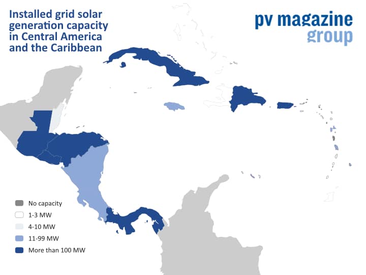 IRENA Grid connected solar capacity in Central America and the Caribbean, end 2020