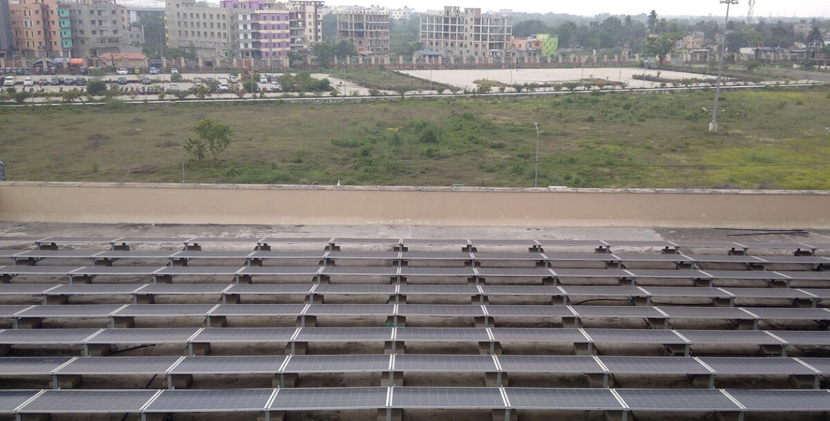 A rooftop solar array at the All India Institute of Medical Sciences, in Kalyani. The Indian government has ambitious targets for rooftop installations.