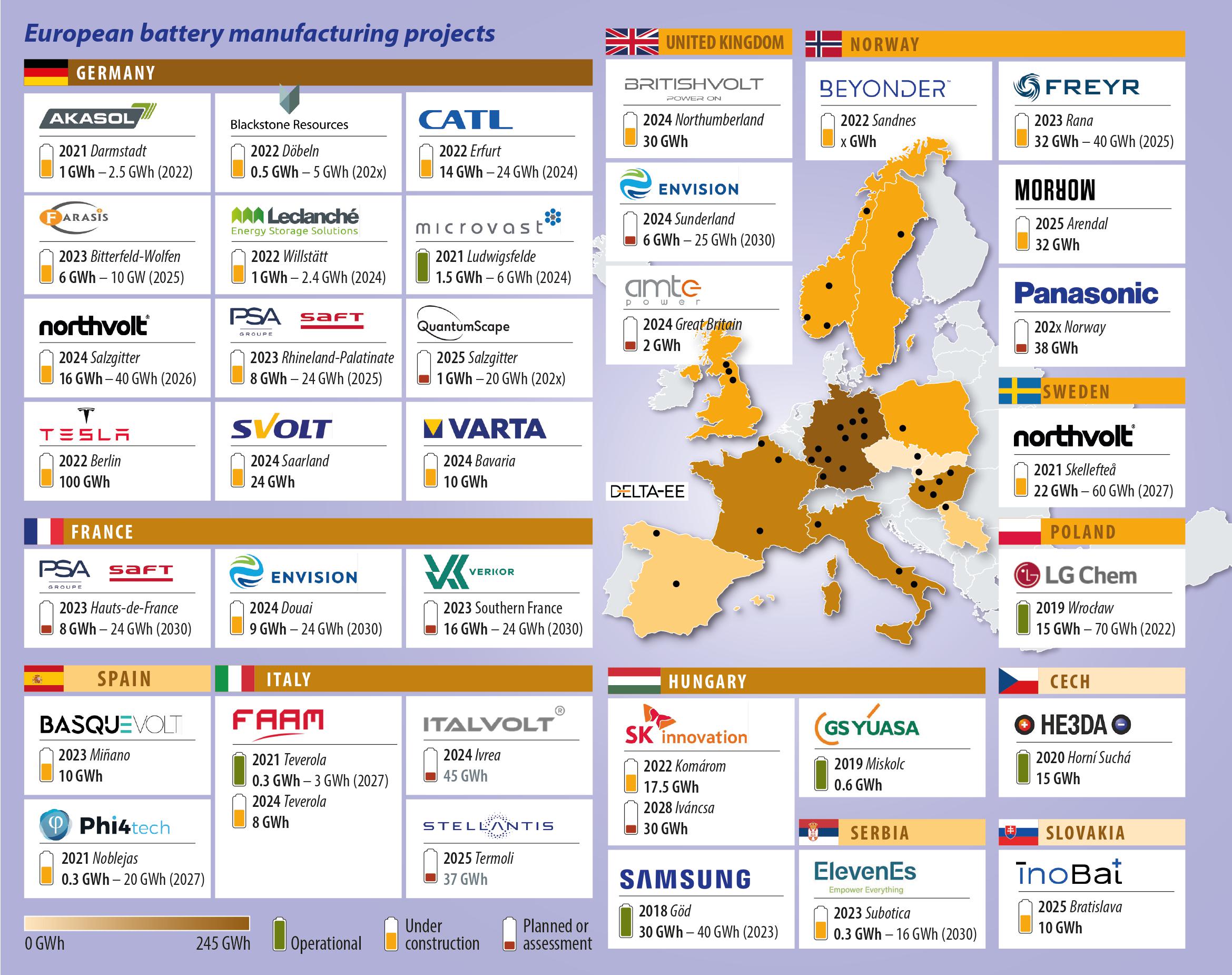 In terms of where these factories will be built, Germany is the top location so far, although France and Italy are expected to become the second and third biggest markets by 2030 in terms of annual manufacturing capacity, overtaking Hungary, which is currently in second place.