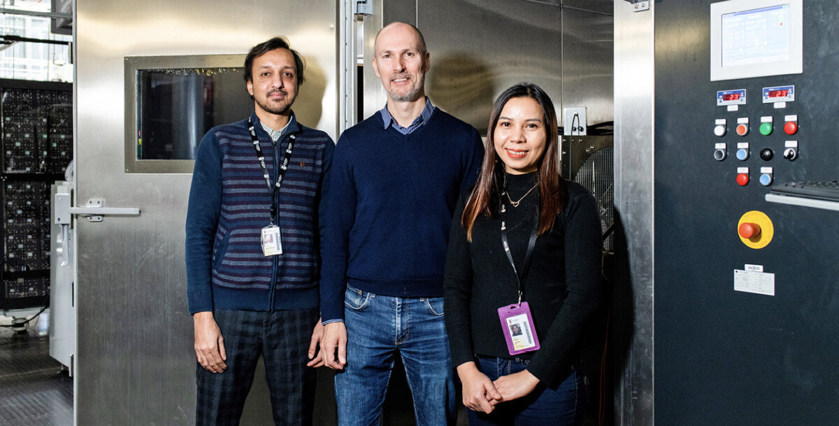 From left: Dr. Muhammed Umair Khan, Prof. Bram Hoex and Dr. Chandany Sen work together at UNSW on solar-cell reliability