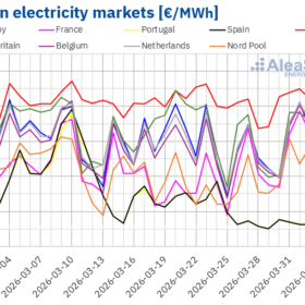 AleaSoft Energy Forecasting’s latest analysis finds negative hourly electricity prices returned to the French and German markets last week, while the British, Dutch and Nordic markets registered their lowest daily averages since October 2025 and the Belgian market saw its lowest daily average since May 2025.