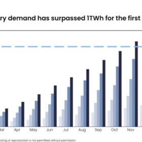 The big milestone comes on the back of a record month for electric vehicle sales and strong battery energy storage system (BESS) deployment. However, EV demand remains far behind BESS with the latter’s impressive growth reaching a year-on-year increase of 175% and cumulative 19.4 GWh deployed in November alone.
