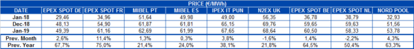 For this year, fuel and CO² prices are not expected to decrease on 2018 figures. The trend will be for a continuation of high European electricity market prices.