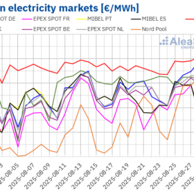 AleaSoft Energy Forecasting’s latest analysis finds a rise in solar energy production helped to bring down electricity prices in some European markets last week. Towards the start of the month, France, Italy, Portugal and Spain all set new records for solar produced on a day in August.