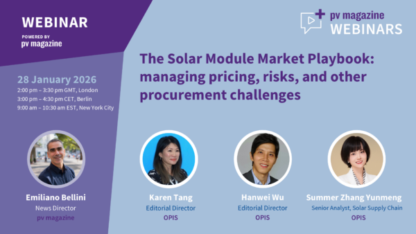 This pv magazine Webinar Plus will provide a comprehensive overview of the global solar module market and the procurement challenges shaping utility-scale and commercial PV projects today. The session will outline actionable strategies that EPC contractors, project developers, investors, and PV product distributors can use to navigate supply chain volatility and secure high-quality photovoltaic panels at competitive prices.